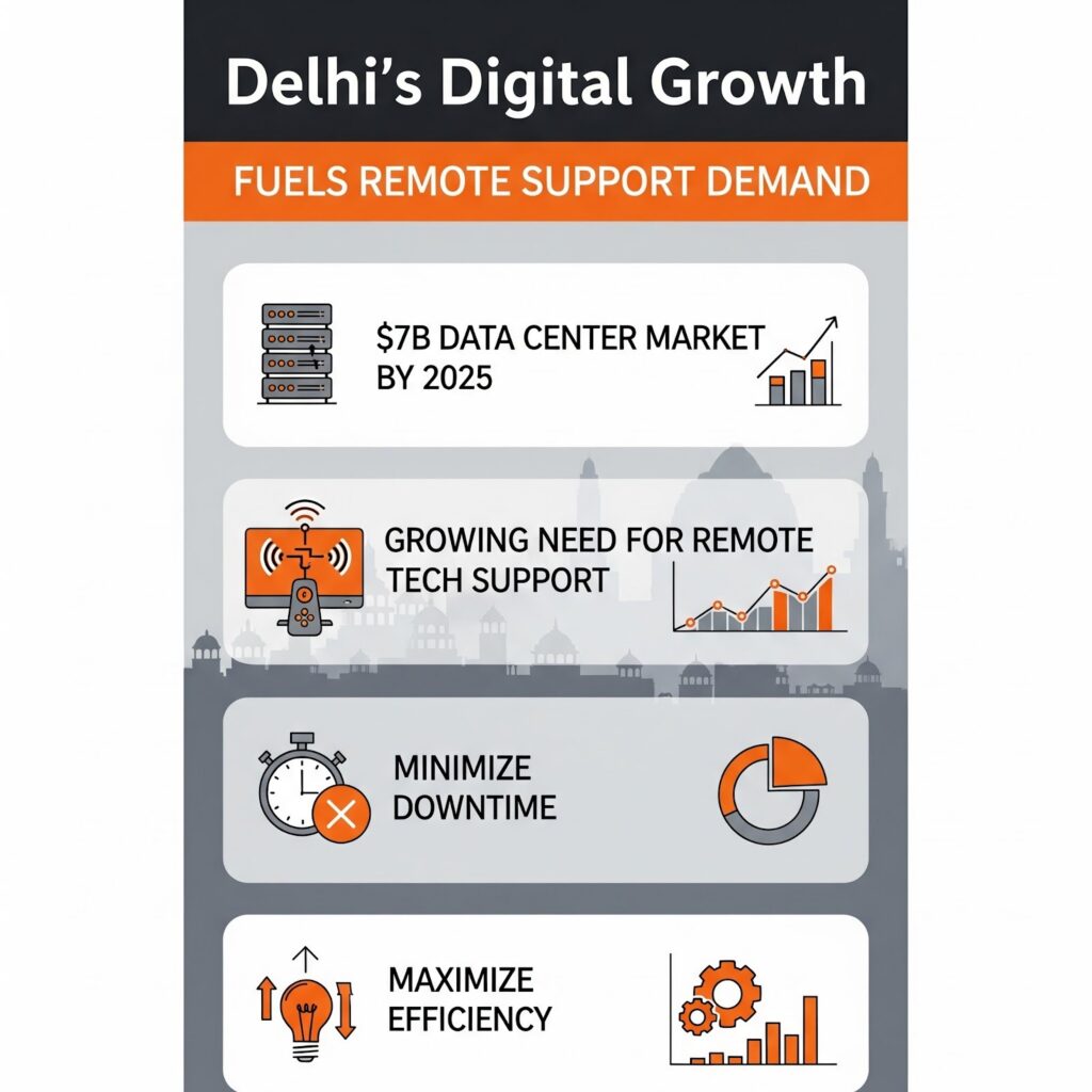 | Delhi’s rapidly expanding digital economy, projected to contribute $7 billion to India’s data center market by 2025, creates unprecedented demand for reliable remote technical support services that minimize downtime and maximize operational efficiency. |